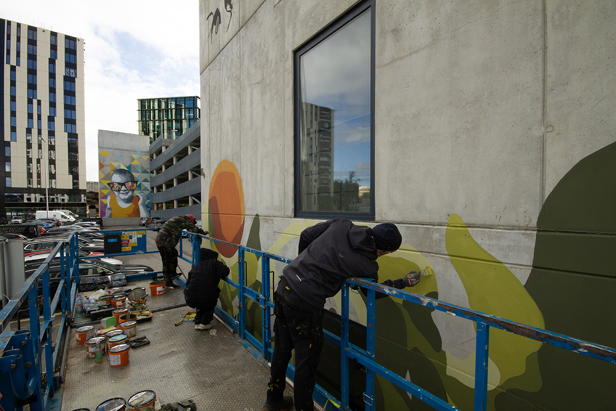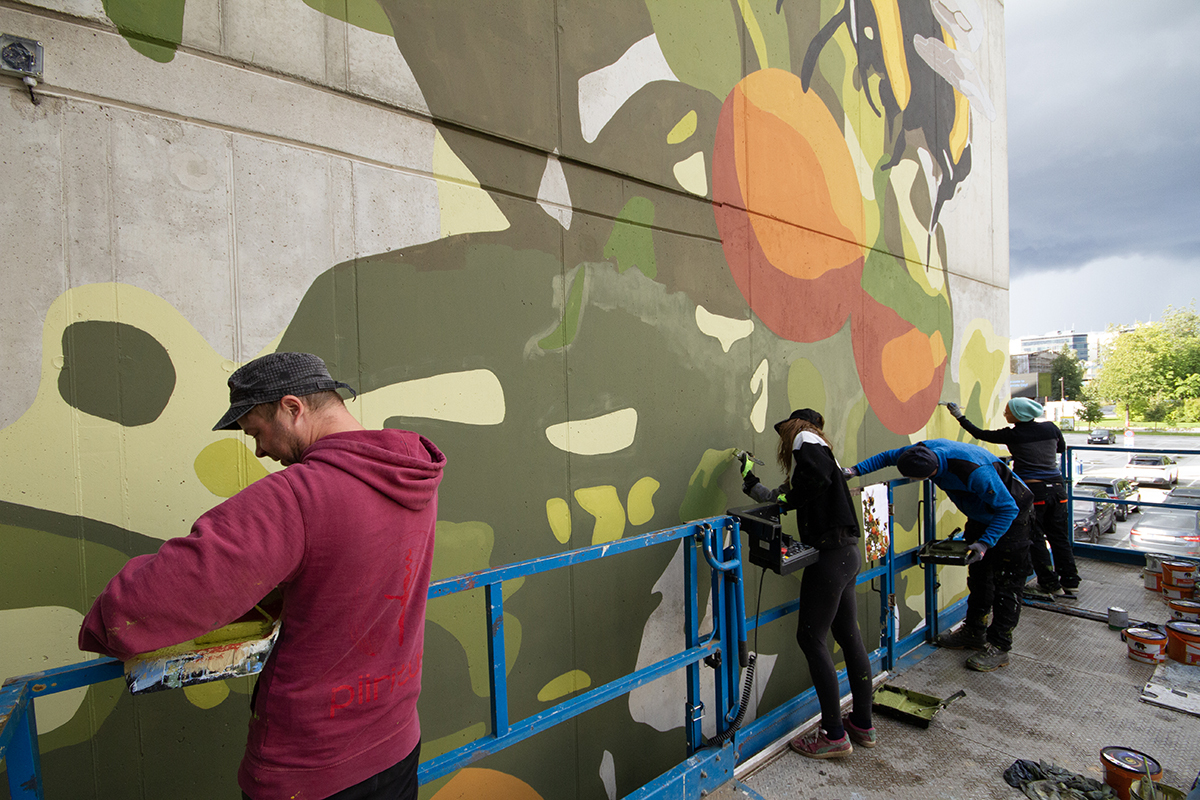 “Minu seinamaalingu kavand „Töömesilased“ kujutab Ülemiste Cityt kui sumisevat tulevikulinna, kus teadmistele, innovatsioonile ja koostööle orienteeritud inimesed ehk “töömesilased” tegutsevad harmooniliselt ja sihipäraselt. See on elav ja mitmekesine keskkond, kus igal inimesel on oma roll ja panus linnaku arengusse. Inspiratsiooni sain mõttest, et Ülemiste linnak toimibki nagu suur mesilastaru – süsteemselt, organiseeritult ja kogukondlikule koostööle põhinedes. “